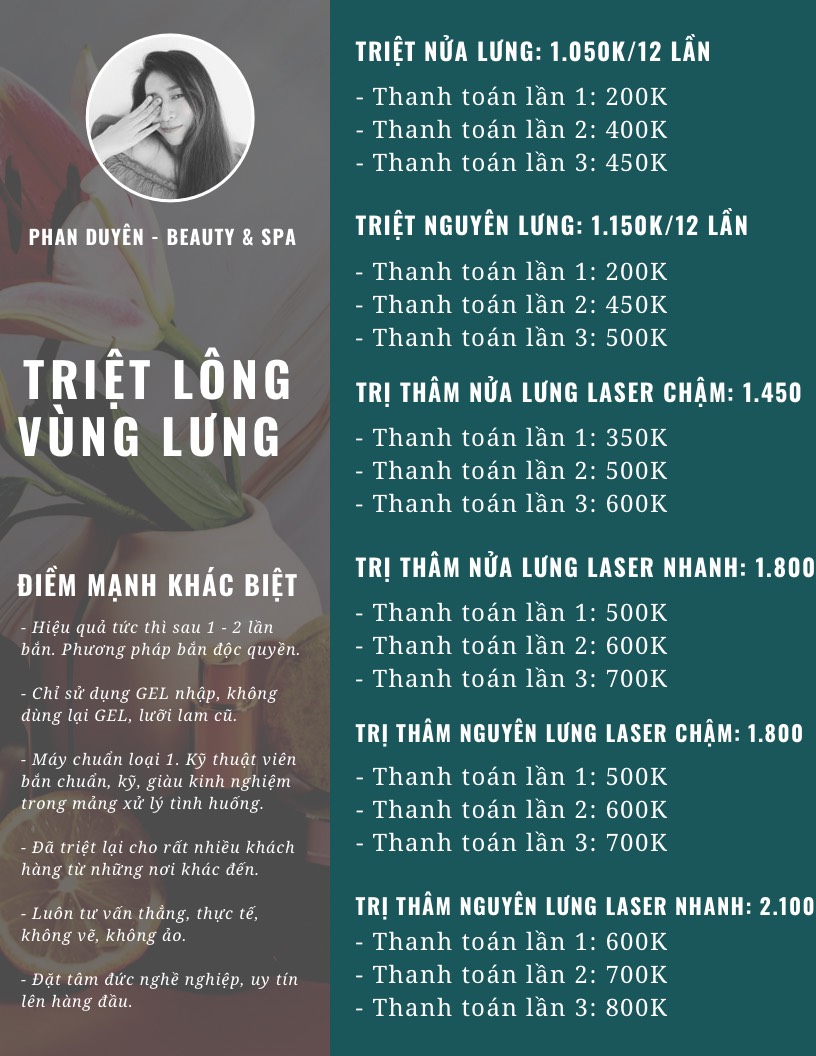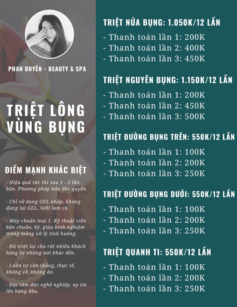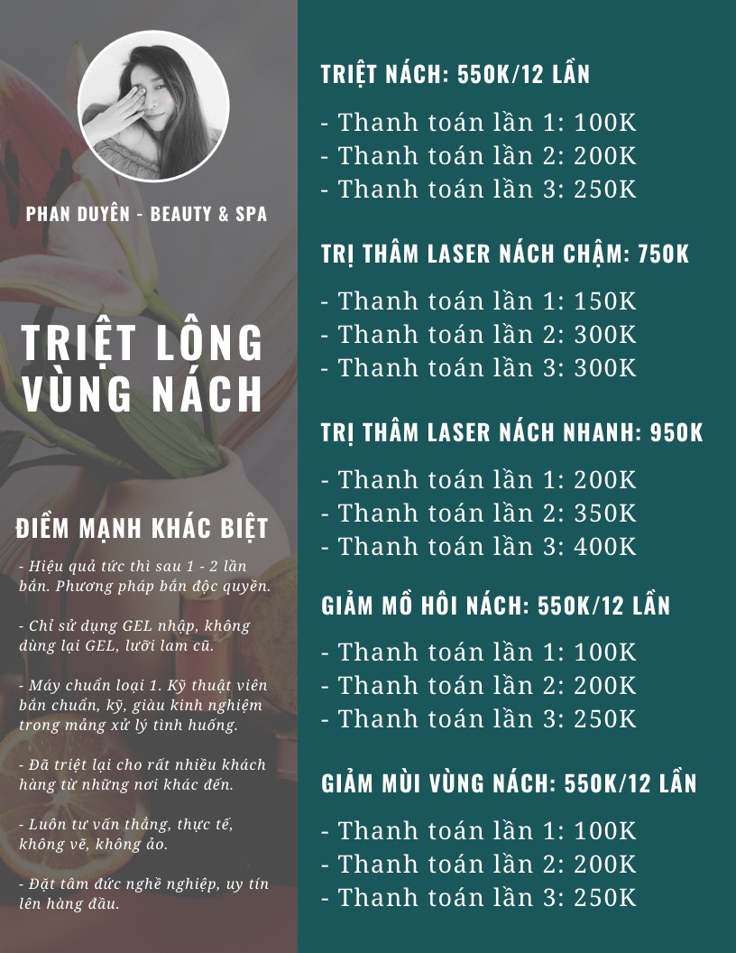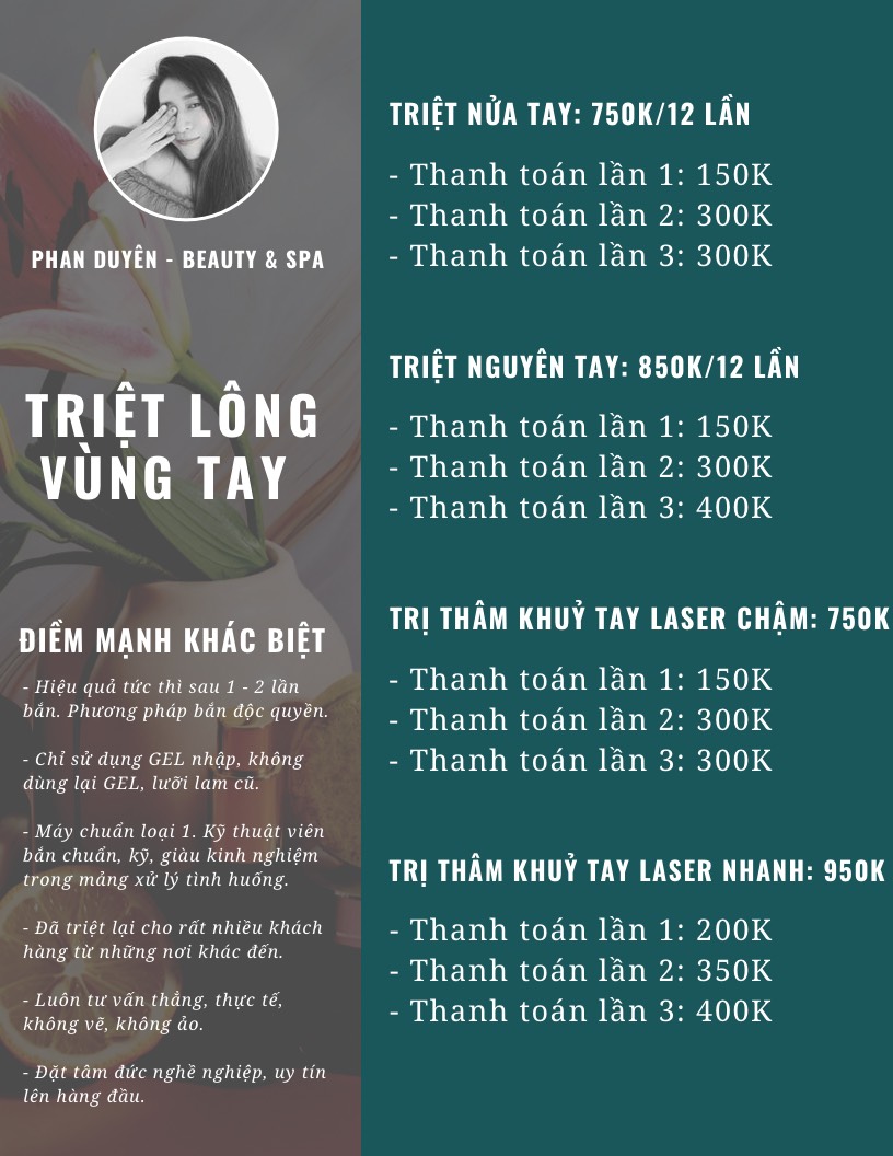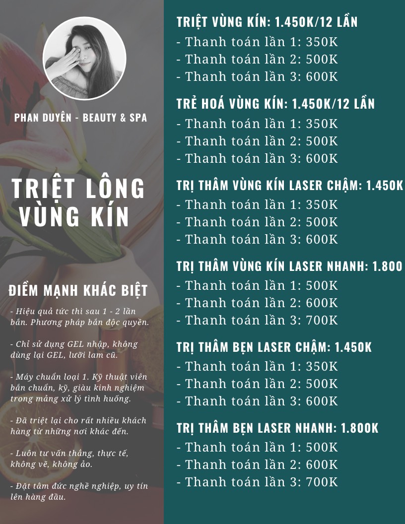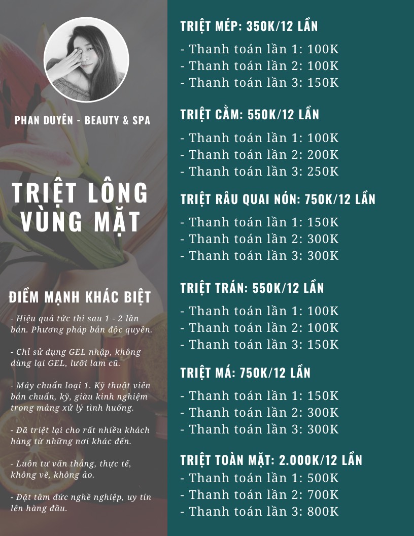 Bảng giá dịch vụ triệt lông tại Phan Duyên Spa